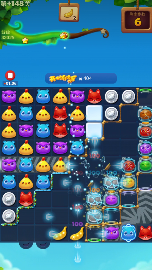 合理利用特效组合和游戏道具能显著提升消除效率,例如直线特效与炸弹特效结合可以高效清除雪块和障碍。花团的激活能够辅助消除云团并帮助收集红宝石,而贴边三消策略则有助于扩大棋盘空间并引导动物下落填充空白区域。在云团剩余较少时会触发下拉机制,此时适时释放特效可以进一步优化布局,但需注意每一步都应围绕收集目标进行规划。