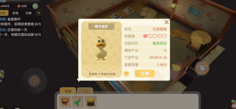 互动与生产管理密切相关,抚摸动物或刷毛能提升心情值和好感度,成年动物每天可产出鸡蛋、牛奶等物品,需用挤奶桶或剃毛刀及时收集,产出槽满时动物无法继续生产,定期收获确保资源不浪费。